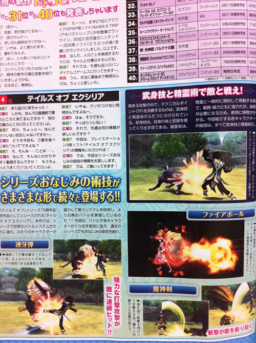 「テイルズオブ」シリーズ15周年記念作品としてリリースされる「テイルズ オブ エクシリア」。本作では、シリーズで好評のバトルシステムがさらに進化。二人のキャラクターが協力して戦うシステムを採用し、より白熱のバトルを実現しているのだ!今回は、バトルで各キャラクターがくりだす術技に加え、過去のシリーズでもおなじみの術技を紹介。