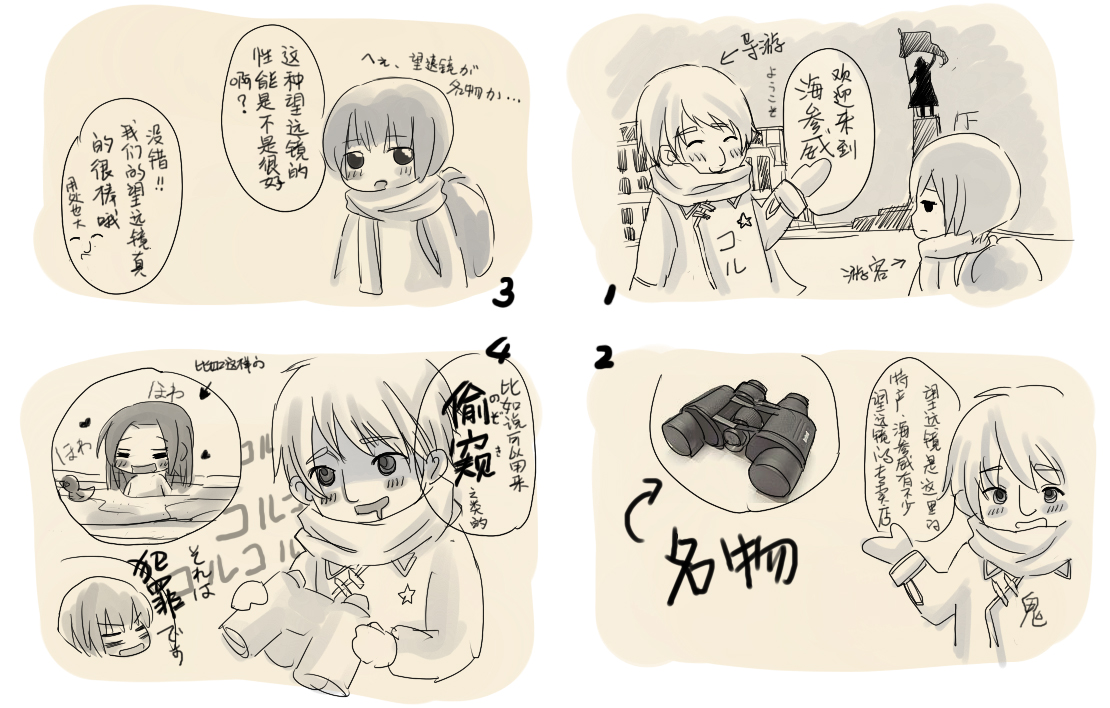 然后还说到海参威的特产是望远镜。于是便有了以下这段……
